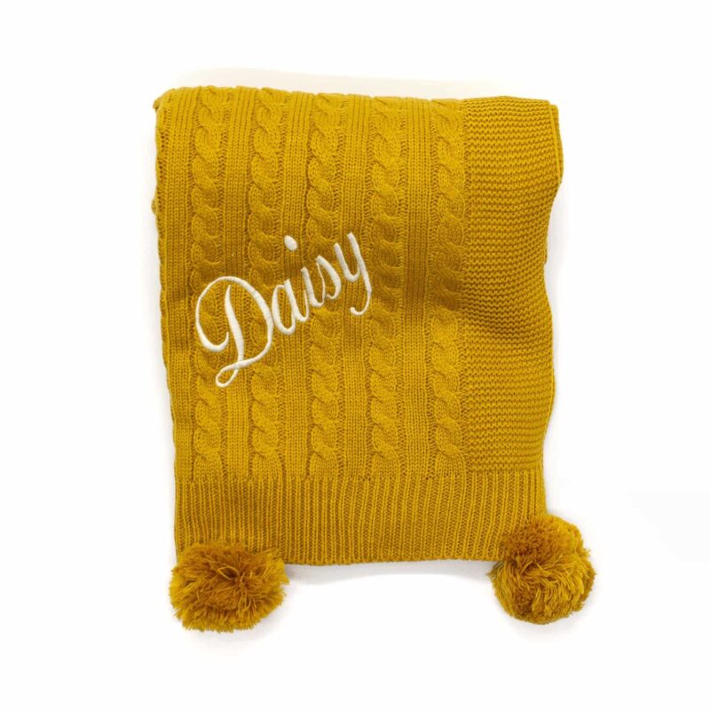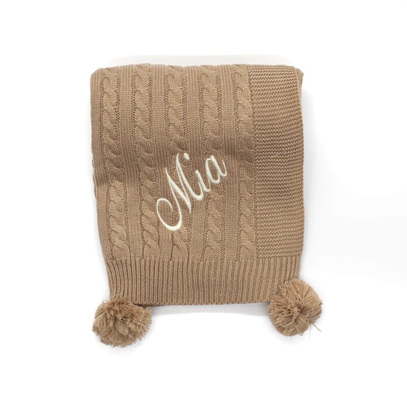 Personalised Beige Baby Pom Bobble Hat, Newborn – 1 Year